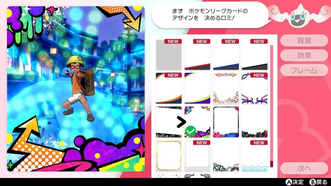 ゲーム名 『ポケットモンスター ソード・シールド』(英語 Pokémon Sword and Shield) カテゴリー 攻略動画・実況動画 ジャンル Nintendo Switch用ロールプレイングゲーム116 rows カードメーカーを使うとリーグカードの「背景」「効果」「フレーム」「ポーズ」「表情」「表面加工」などの項目を変更できるほか、トレーナー写真の拡大縮小・方向転換もできる (トレーナー写真は着せ替えにより変更できる) 。各項目で選択できるカスタム素材の種類はゲーム内で一定の背景 背景 解放条件 最初から 最初から ポケモン剣盾の攻略をまとめました。お役立てください。 結果、恐らくリーグカードの影響はありますね。露骨にバトルタワーの背景が出る。普通にやってたらほぼほぼ出ないんですけど、それはきっとバトルタワー